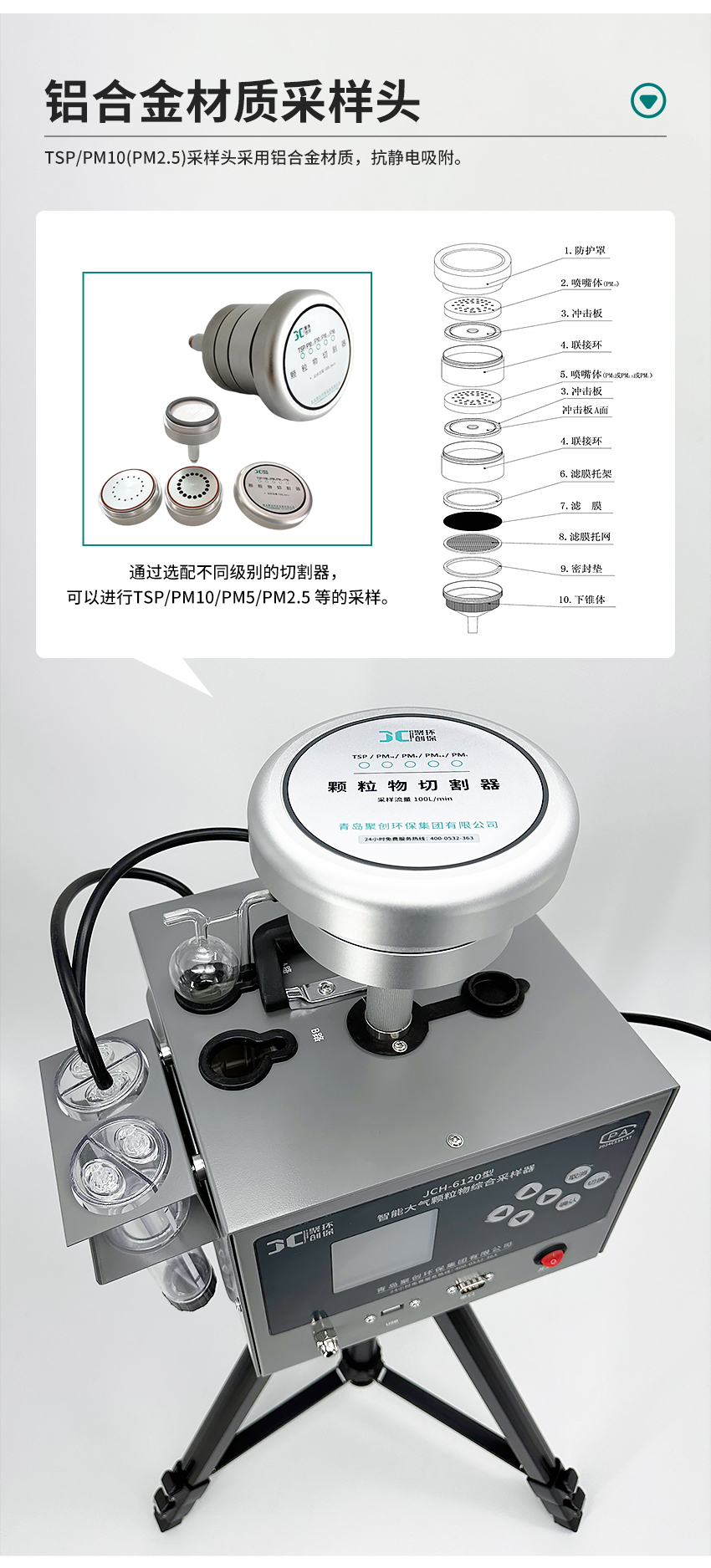 8. TSP/PM10(PM2.5)采樣頭采用鋁合金材質(zhì),抗靜電吸附。