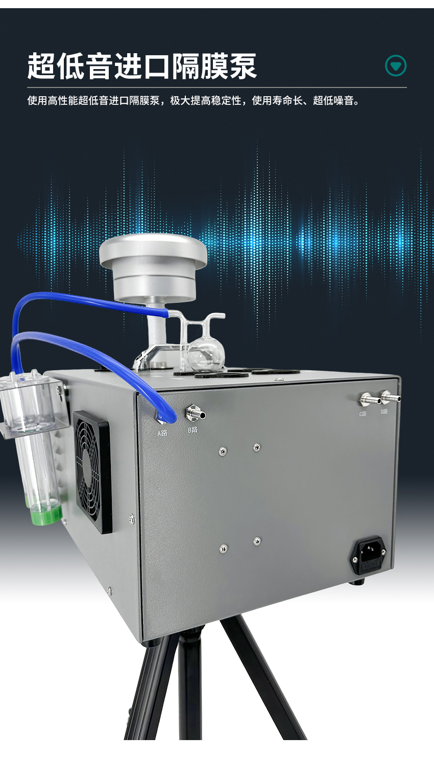 3. 大氣使用高性能超低音進口隔膜泵,極大提高穩(wěn)定性,使用壽命長、超低噪音。