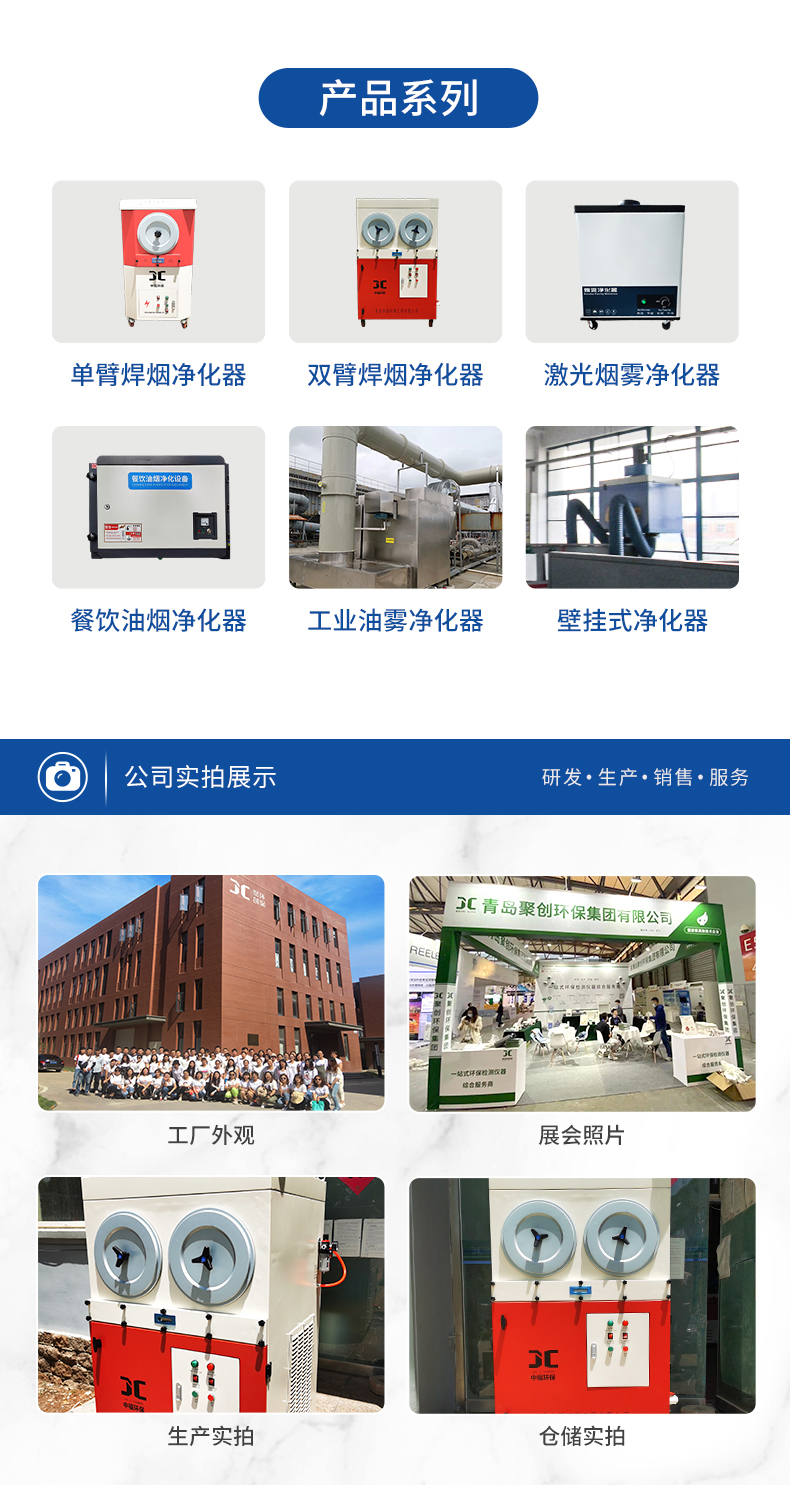 3、利用可360度隨意活動的萬向吸臂,可從煙氣發生處吸除煙氣,大大提高了煙塵的收集率,保證了作業人員的健康。