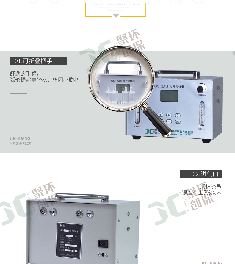 此類大氣采樣器為轉子流量計,另有電子流量計恒流大氣采樣器JCH-2400可供選擇。
