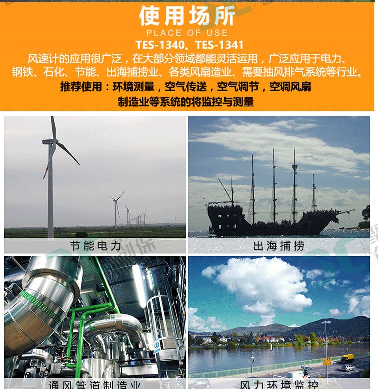 廣泛用于溫室、塔吊機(jī)、船舶、 碼頭、 石油平臺、環(huán)境保護(hù)、索道 、氣象站等環(huán)境風(fēng)速的測量。