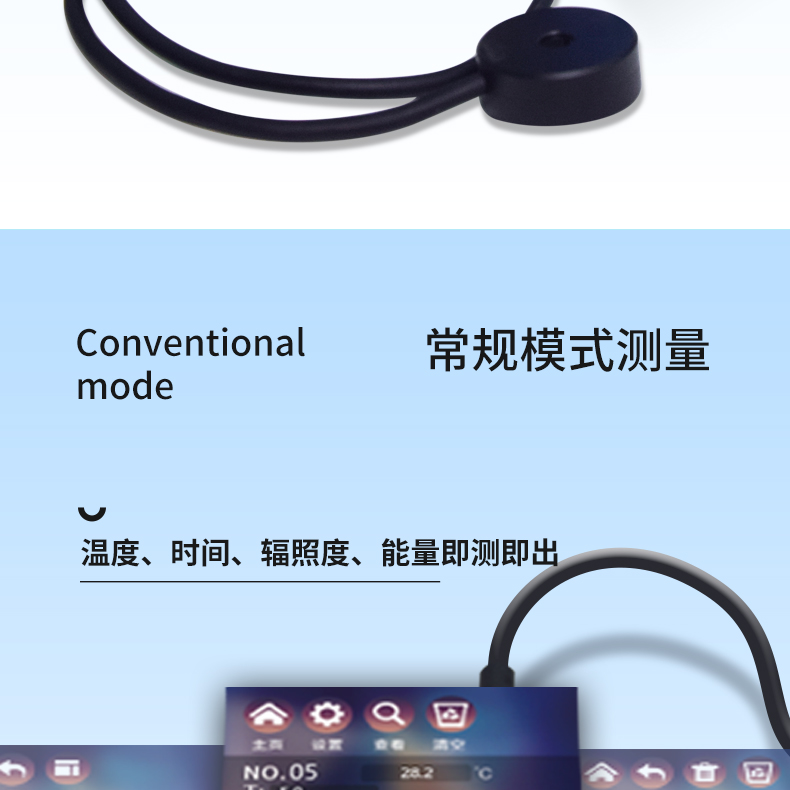 儀器分為主機和探頭兩部分,同一主機可根據不同使用需求搭配多款探頭,即插即用,滿足更多使用場景,可廣泛應用于實驗室、工廠或其他現場操作,幾乎可以在所有應用領域的質量控制中實現準確的紫外線光強、能量測試。