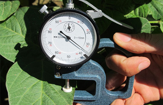 葉片是植物重要的器官,其厚度變化可以反映出植物生長狀態的變化,如光合作用、水分情況、蒸騰情況、土壤溫濕度情況、養分情況等。研究表明,葉片厚度變化具有周期規律性,可分為長周期和短周期(24小時)。掌握這些規律對研究植物水分狀態具有重要意義,還可以通過這些規律指導農業節水灌溉。YHD-1 葉片厚度儀是一種專業測量葉片厚度的工具,可以精準的測量出葉片的厚度。