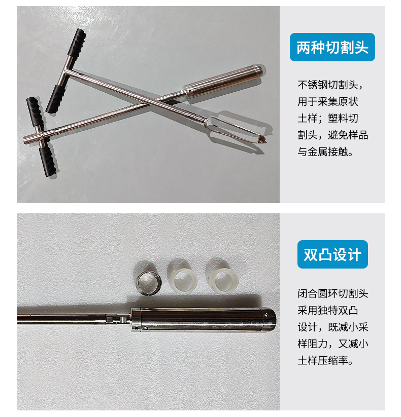 3.標配不銹鋼切割頭,用于采集原狀土樣;