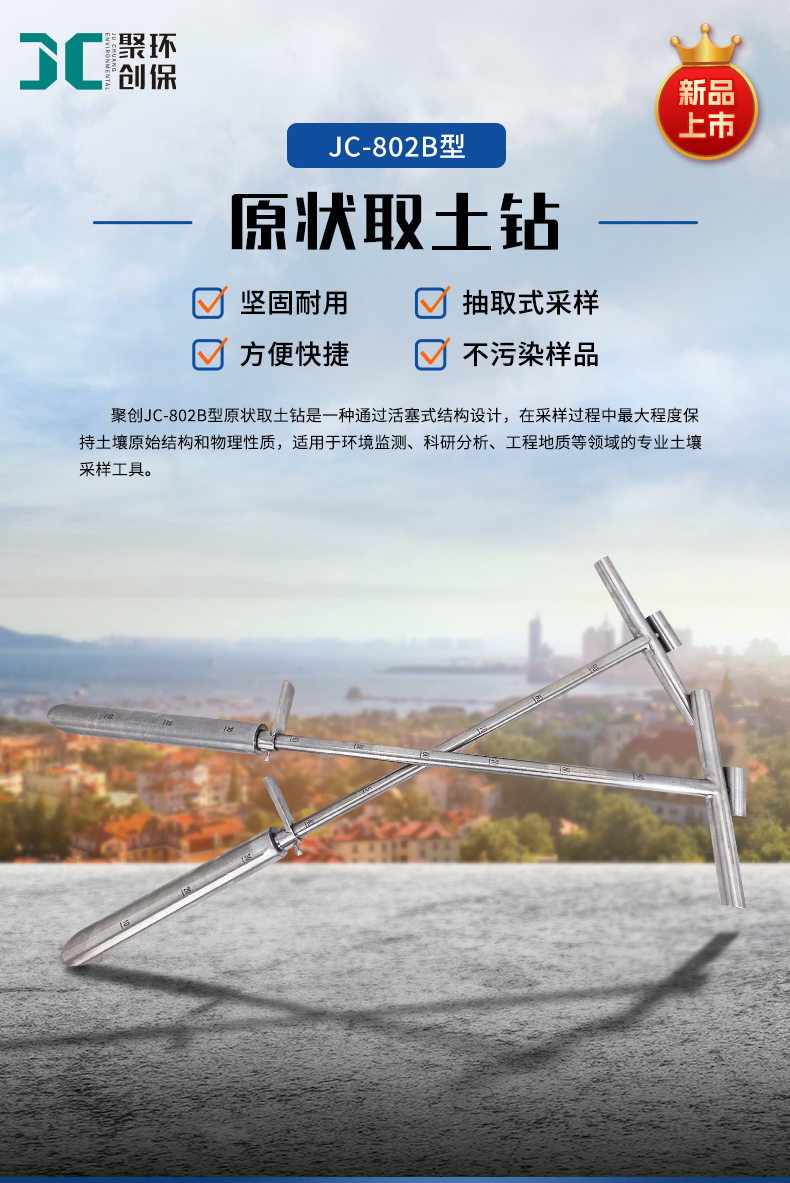 聚創JC-802B型原狀取土鉆是用于采集保持土壤原始結構和物理性質(如容重、孔隙度、含水量等)樣品的專用工具,廣泛應用于土壤學、生態學、環境監測等領域。