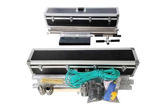 T型手柄×1,擊打手柄×1,1米延長桿×5,配重×3,尾翼×1,外六角螺絲套裝×6,繩子×1,不銹鋼套管×1,切割頭×1,不銹鋼固定裝置×1,采樣管×4,管帽×8,樣品推出器×1,吸能錘×1,鏟刀×1,扳手×2,手套×1,鋼卷尺×1,刷子×1,抹布×1,鋁合金箱×2