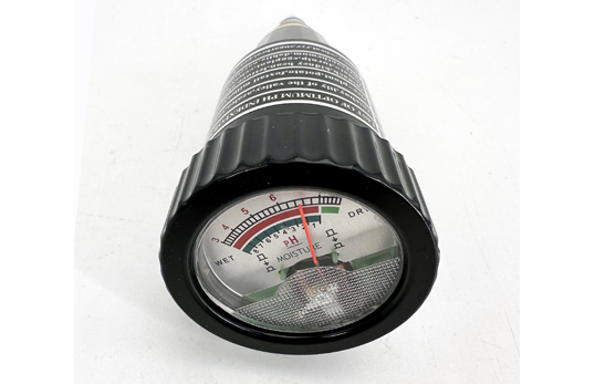(3) 酸堿值測定時,直接插入測試點土內(nèi),金屬板面必須全部入土,約10分鐘所得的才是正確值。土壤的密度、濕度和肥份過多都可能影響測定值,故必須在不同的位置測定數(shù)次,以求平均值。