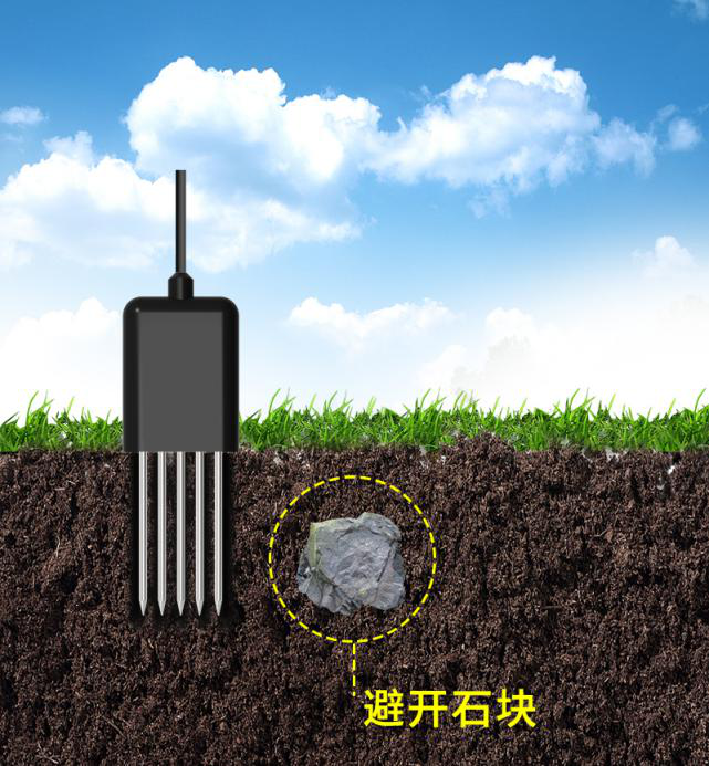 選定合適的測量地點,避開石塊及類似堅硬物體,確保鋼針不會碰到堅硬的物體,按照所需測量深度拋開表層土,保持下面土壤原有的松緊程度,緊握傳感器垂直插入土壤,插入時不可左右晃動,一個測點的小范圍內建議多次測量求平均值。