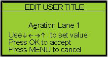使用這種輸入數據的方法,用戶可以輸入或編輯文本,還可以被用戶用來自定義測量標題和單元。文本字符串用戶使用顯示一個閃爍的指示所選字符光標。←→鍵用來選擇一個字符,↑↓鍵用來改變所選字符。當所有的變更完成按OK鍵存儲文本字符串。要退出不保存更改按MENU鍵。