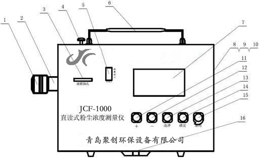 JCF-1000 直讀式粉塵濃度測(cè)量?jī)x由液晶顯示屏、采樣連接頭(包括環(huán)境呼塵采樣)、采樣管、檢測(cè)裝置、氣泵組件、單片機(jī)控制電路等組成。