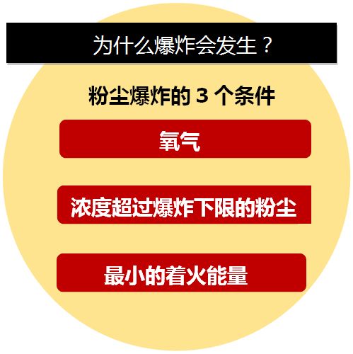 構成粉塵爆炸的必要條件:粉塵本身是可燃粉塵,非燃性粉塵是不具備爆炸條件的,在日常生活或者在工業生產中,隨處可見粉塵。粉塵的危害也是巨大的,粉塵爆炸的能量大,且能引起連續爆炸。而爆炸前又毫無征兆,危害性極大。粉塵爆炸事故在發達國家也時有發生,一些可燃性粉塵生產、使用、儲運企業因粉塵爆炸導致廠房垮塌、燒毀,經濟損失巨大。