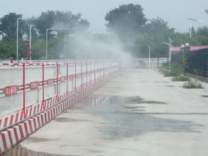 1、攪拌機(jī)進(jìn)場(chǎng)前,用輕質(zhì)類心板做好密閉式攪拌機(jī)作業(yè)棚,并安裝好噴霧水龍頭,進(jìn)行定時(shí)空中降塵。