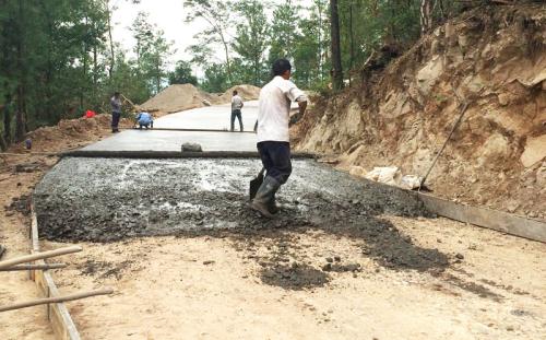 5、向攪拌機(jī)倒入粉裝外加劑,先提前將外加劑稱量好,裝入塑料袋中,再慢慢倒入。