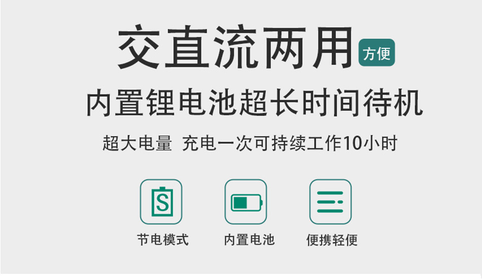 8.內置可充電鋰電池,實現(xiàn)交直流兩用