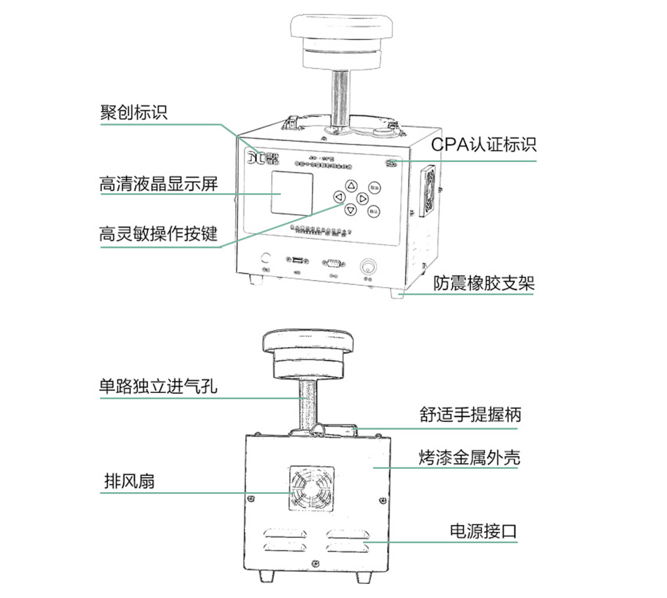 2.TSP/PM10/PM2.5/PM5/PM1采樣頭采用鋁合金材質,抗靜電吸附