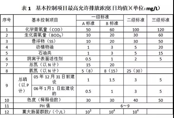 根據城鎮污水處理廠排入地表水域環境功能和保護目標,以及污水處理廠的處理工藝,將基本控制項目的常規污染物標準分為一級標準、二級標準、三級標準