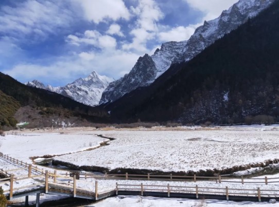大雪覆蓋中的格聶若隱若現
