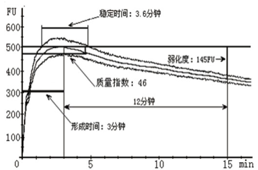 ? 穩定時間 粉質曲線的上邊沿與500FU標線兩次相交的時間間隔,單位:分鐘