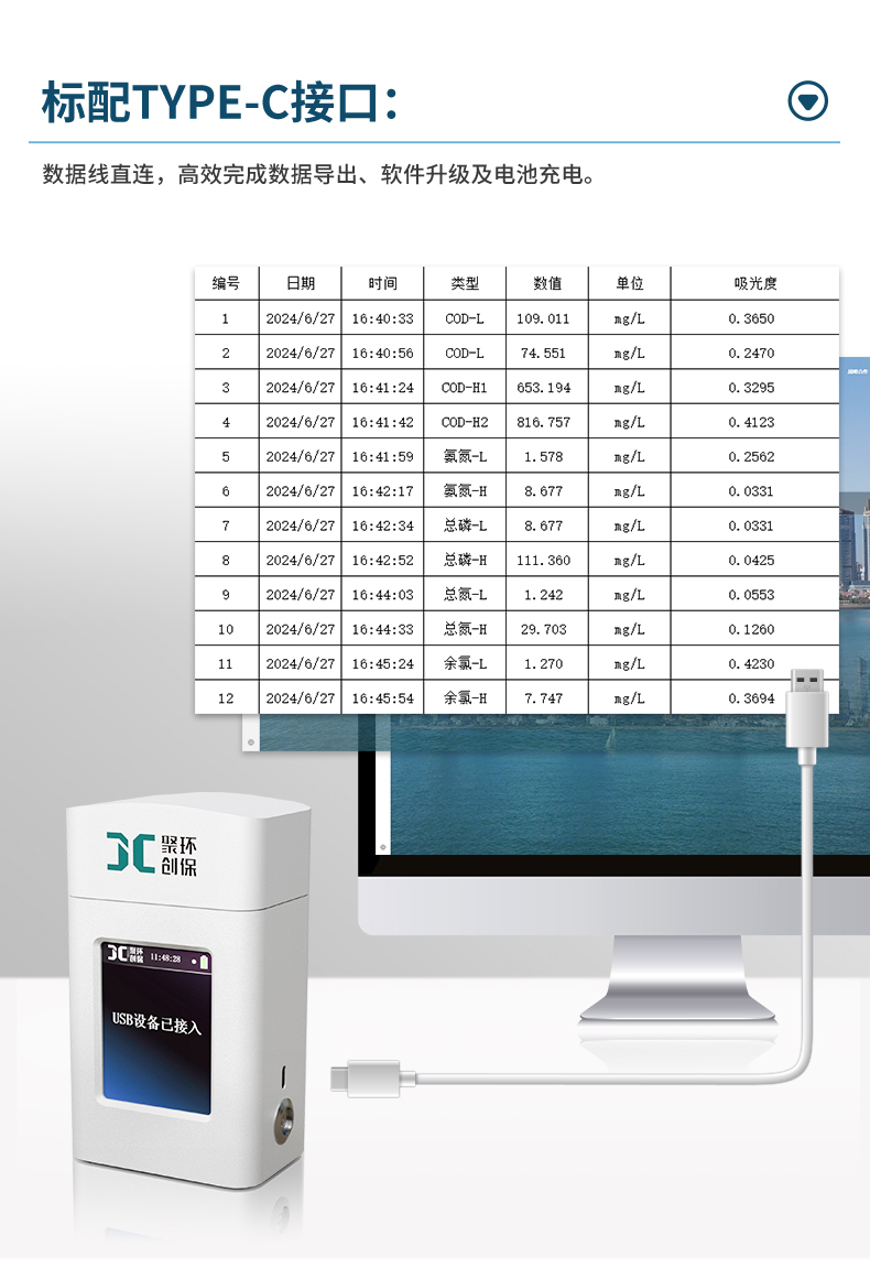 聚創JC-COD-100K型手持式COD測定儀不僅能測定水樣的COD指標,而且支持多參數同時測量,如水樣的氨氮、總磷、總氮、濁度、色度、懸浮物、硝酸鹽氮、磷酸鹽、余氯/總氯等其他指標。
