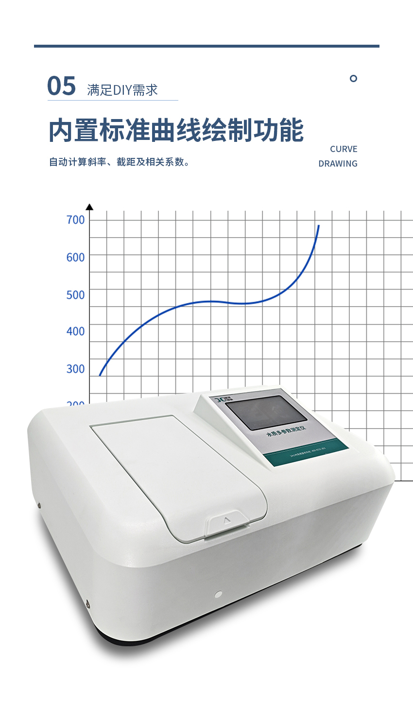 7. 曲線繪制智能化:內置標準曲線繪制功能,自動計算斜率、截距及相關系數,滿足用戶DIY需求。用戶可根據實際測量需求靈活調整和制定標準曲線。