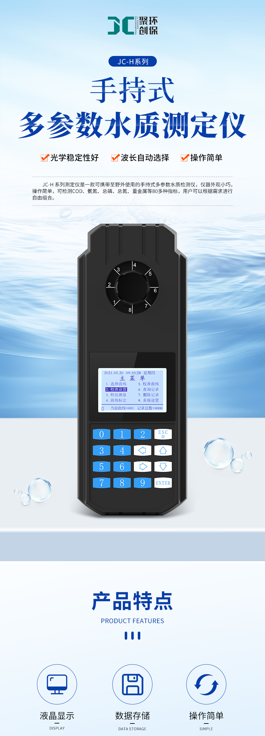 產(chǎn)品名稱:JC-H系列手持式多參數(shù)水質(zhì)測定儀
