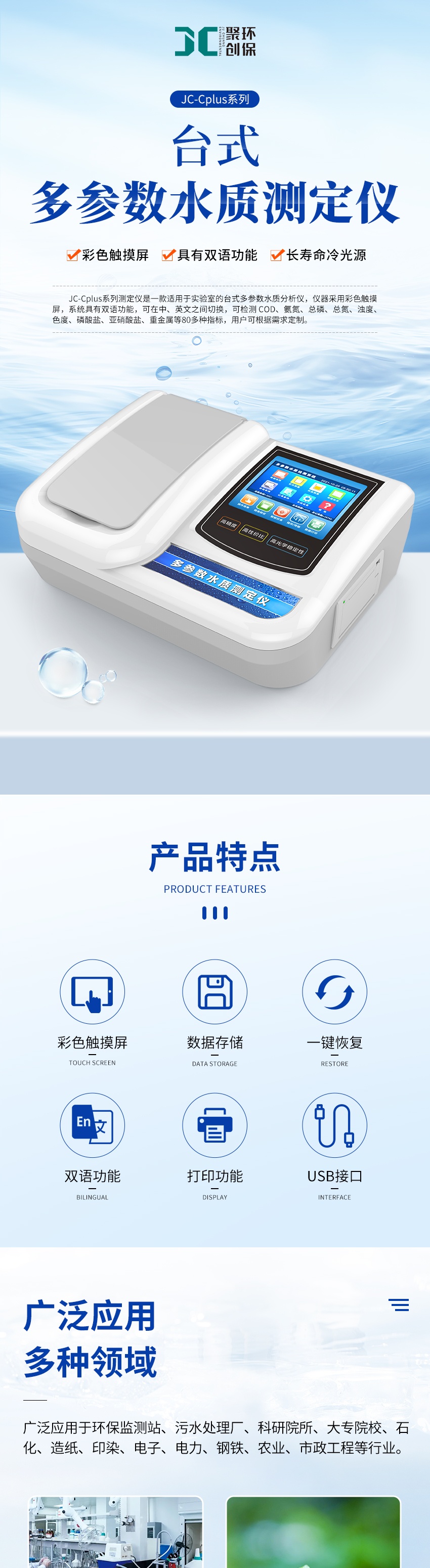 產品名稱:JC-Cplus系列臺式多參數水質測定儀