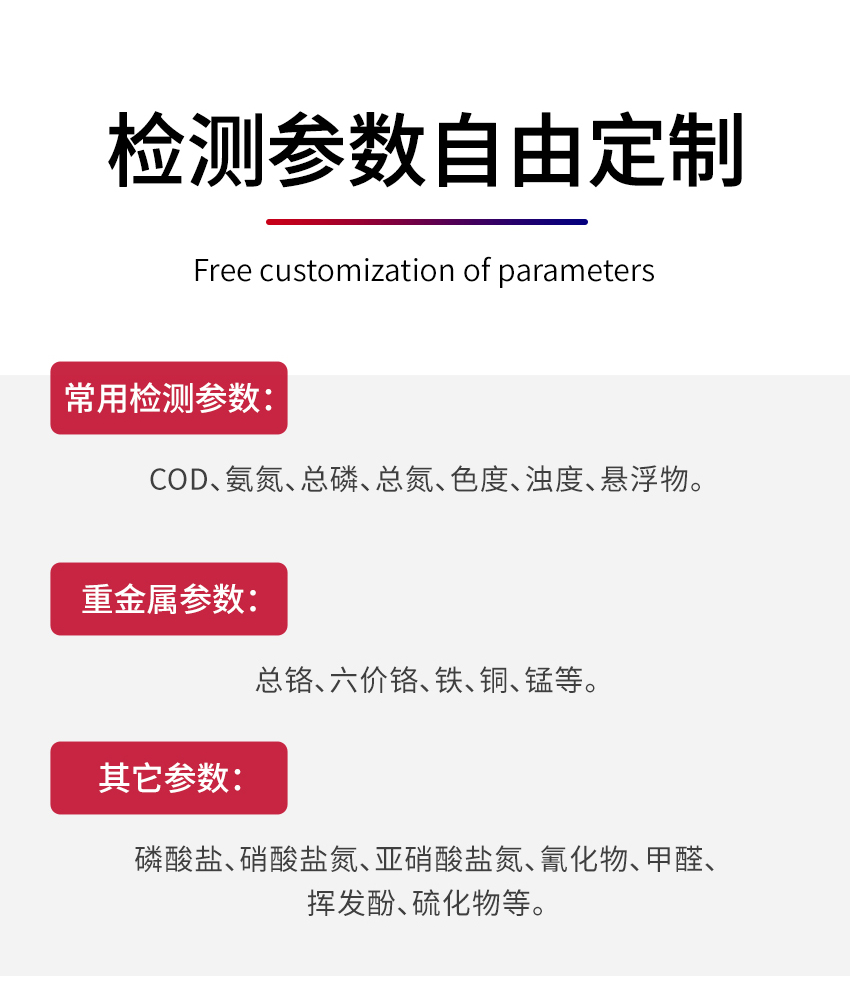 1、多參數水質測定儀主要用于檢測COD、氨氮、總磷、總氮,也可根據用戶需求定制添加色度、懸浮物等更多參數,詳情可咨詢客服。