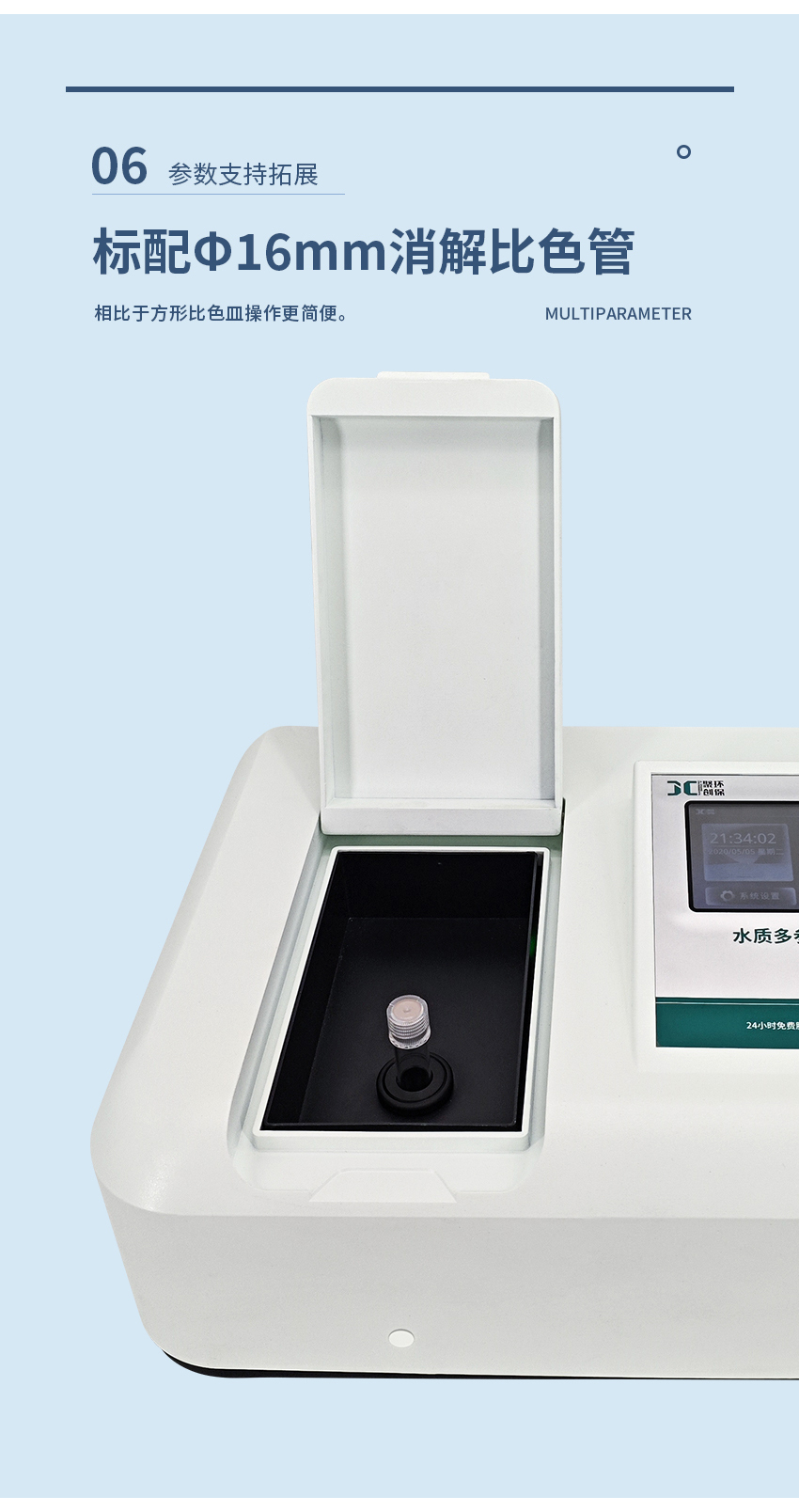 8.簡易比色設計:比色池適用于Φ16mm圓形比色管,相比方形比色皿,操作更為簡便。獨特的比色池設計,簡化了比色操作流程,提高檢測效率。