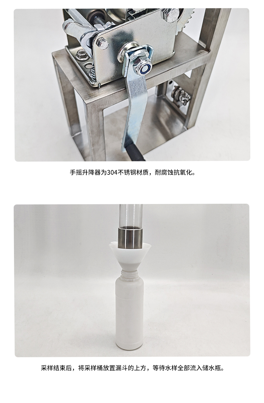 1.產品主要材質為304不銹鋼,采樣桶材質為不銹鋼和PVC材料。