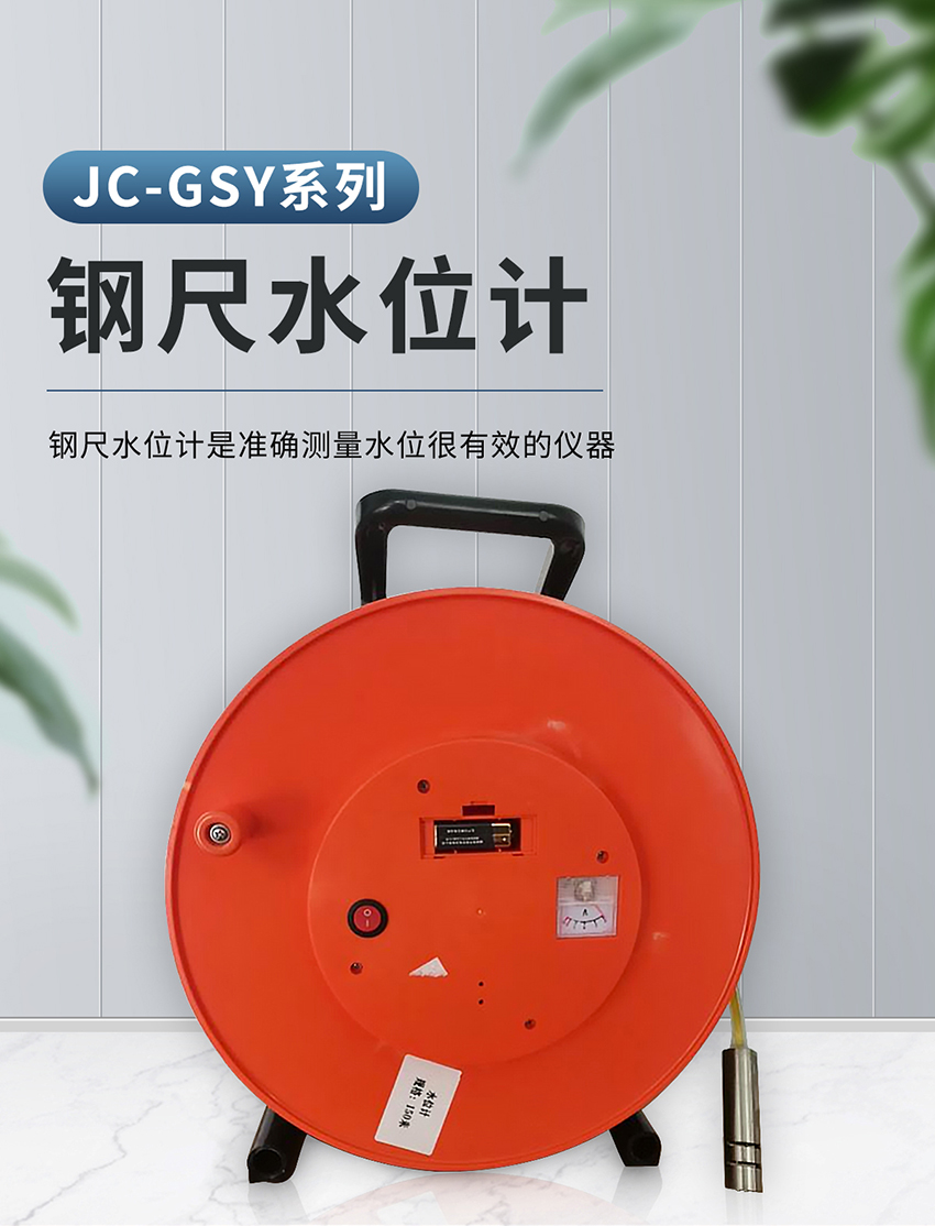 鋼尺水位計,由探頭、鋼尺電纜、接收系統和繞線盤等部分組成。