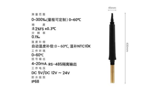 1、本品為鹽度數字傳感器,可直接輸出RS485信號和4~20mA信號