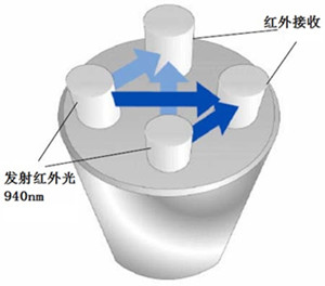 注:紅外接收采用高精度的940nm光強轉換為頻率的集成電路芯片,使接收到的光強轉變為數字信號。