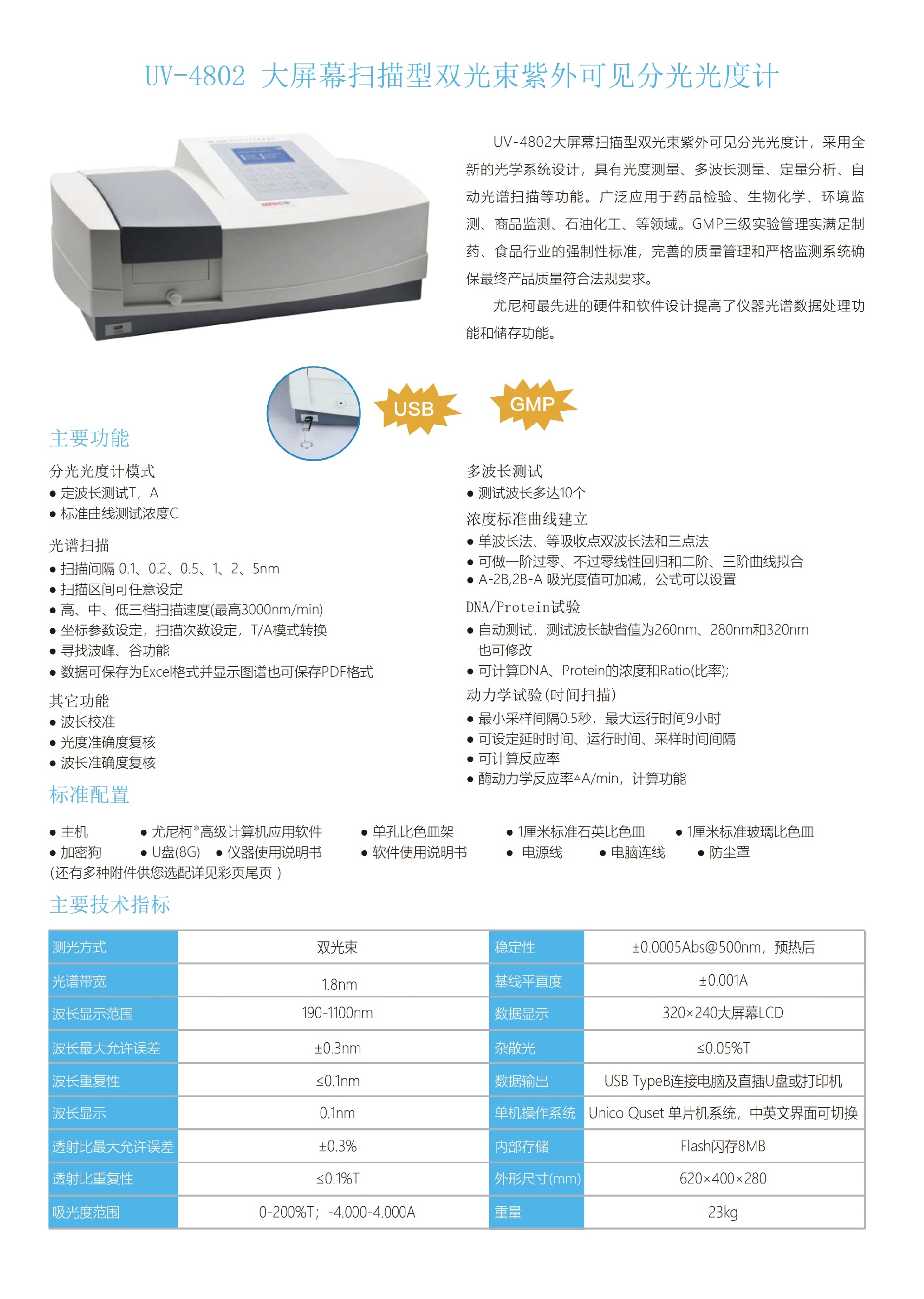UV-3802/UV-3802S大屏幕掃描型準雙光束紫外可見分光光度計