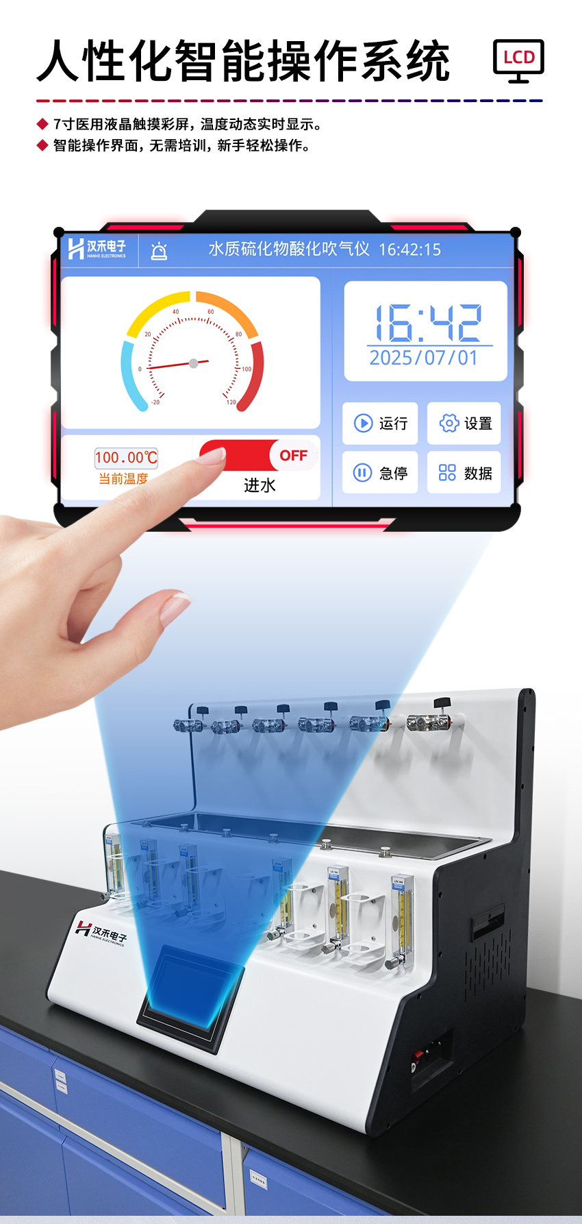 運用7寸高清液晶觸摸屏,操作界面直觀清晰,方便用戶進行參數設置與操作。溫度實時動態顯示,提升了實驗的便利性與智能化水平。