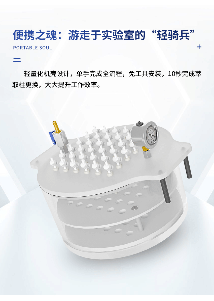 聚創(chuàng) JC - GX - 36S 型固相萃取裝置,基于液固萃取與液相色譜技術(shù)融合發(fā)展而來。該裝置借助固體吸附劑,吸附液體樣品中的目標(biāo)化合物,使其與樣品基體及干擾化合物相分離。隨后,通過洗脫液洗脫或加熱解吸附的方式,實(shí)現(xiàn)目標(biāo)化合物的分離與富集,即達(dá)成樣品的分離、凈化和富集。其目的在于降低樣品基質(zhì)干擾,提升檢測靈敏度,廣泛應(yīng)用于各類食品安全檢測、農(nóng)產(chǎn)品殘留監(jiān)控、醫(yī)藥衛(wèi)生、環(huán)境保護(hù)、商品檢驗(yàn)、自來水及化工生產(chǎn)等實(shí)驗(yàn)室場景。