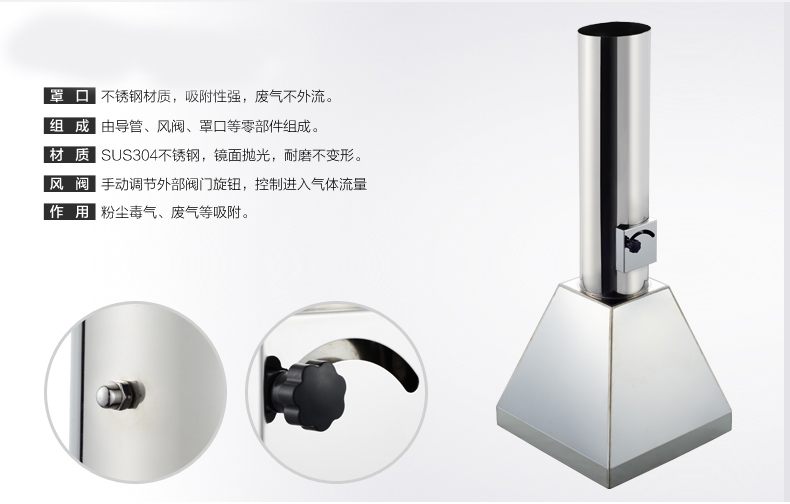 3、由氣流調節閥、風門、伸縮導管、吸收罩頭等部分組成。