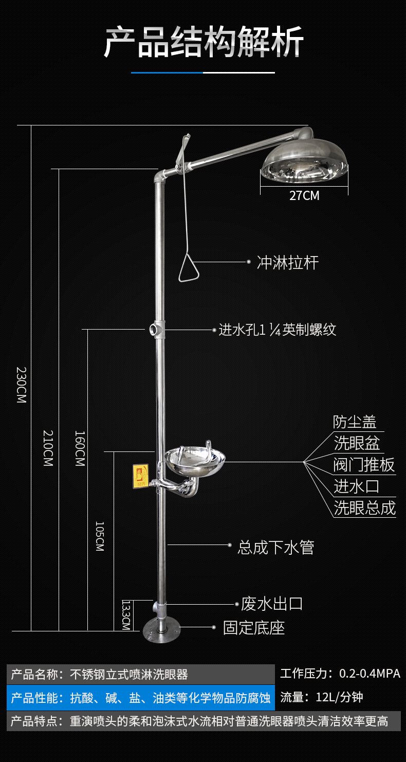 4.洗眼器用于緊急情況下,暫時(shí)減緩有害物體對(duì)身體的傷害,進(jìn)一步的處理和治療,須遵從醫(yī)生的指導(dǎo)