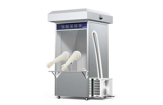 核酸采樣亭是一款專為咽拭子和鼻拭子取樣工作設計的產品。設備通過配置的通風凈化系統將潔凈安全的 空氣送入內部空間,并使內部保持相對正壓狀態。通過構建隔離的正壓空間,從而使艙體內部空氣與外部隔離 ,避免外部空氣進入艙體內部,進而有效保護內部防護人員的安全,避免其因采樣工作而受到感染。保證安全 的同時,提升防護人員的操作靈活性和舒適度,節省了檢測時間,提高了檢測效率。