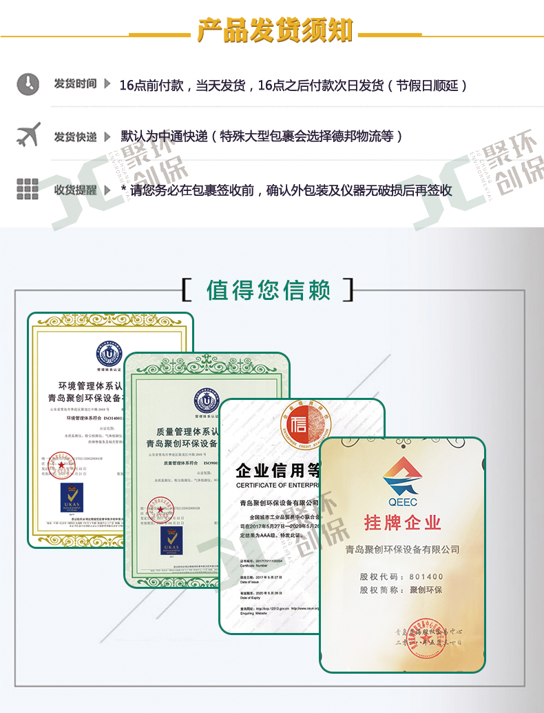 (2)針對直讀式儀器,為提高測量精度,請提前告知濃度范圍。用戶無要求,我們將根據國標要求進行儀器標定。