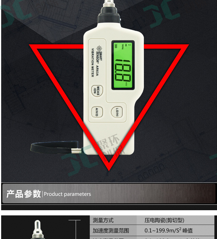 AS63A手持測振儀采用人工極化陶瓷壓電效應設計而成。