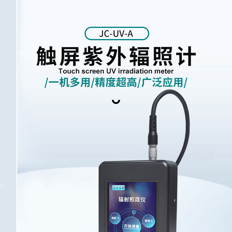 JC-UV-A觸摸屏輻射照度計采用高清全觸摸屏設計,操作更簡單;即使是弱光也能快速讀取,精度更高;量程可自動識別切換,真正實現從弱光到強光一機式測試,儀器操作更加簡單快捷??焖佟蚀_地測量出不同光源強度下的光固化、光刻、光照治療、殺菌消毒、理療熒光分析、植物栽培、水處理、氣象和農業生產紫外線光源等各行業的紫外線輻照度。