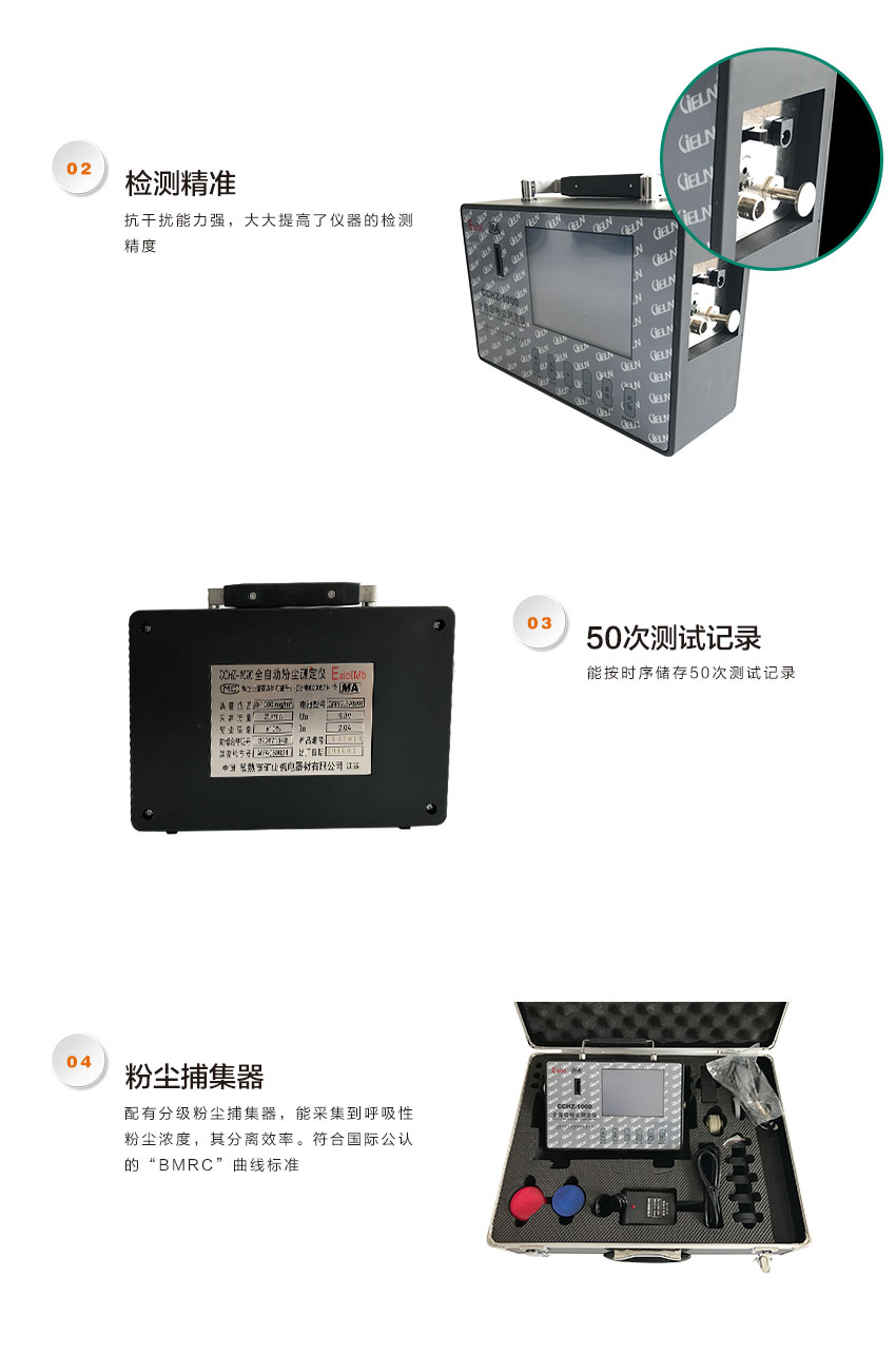 CCHZ-1000全自動(dòng)粉塵測(cè)定儀采用先進(jìn)的中央處理器技術(shù)。對(duì)采集的各種數(shù)據(jù)處理快,抗干擾能力強(qiáng),大大提高了儀器的檢測(cè)精度,同時(shí)能按時(shí)序儲(chǔ)存50次測(cè)試記錄。儀器由中文顯示屏,高性能抽氣泵、粉塵濃度檢測(cè)電路、欠壓保護(hù)顯示,安全電源等組成。該儀器配有分級(jí)粉塵捕集器,能采集到呼吸性粉塵濃度,其分離效率符合國(guó)際公認(rèn)的“BMRC”曲線標(biāo)準(zhǔn)。