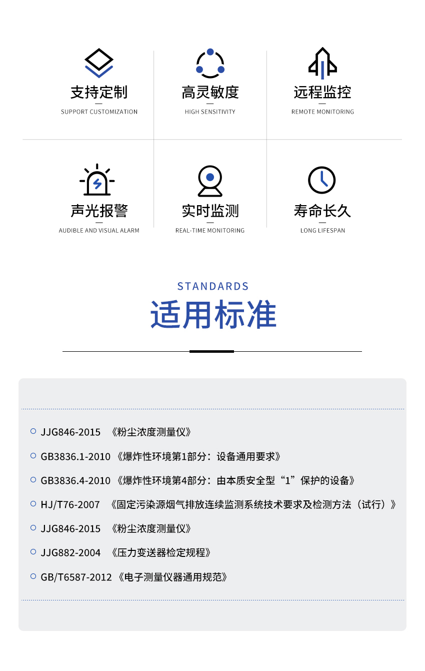 1. 高靈敏度與良好線性度:采用電荷感應技術,對粉塵的探測靈敏度高,線性度好。