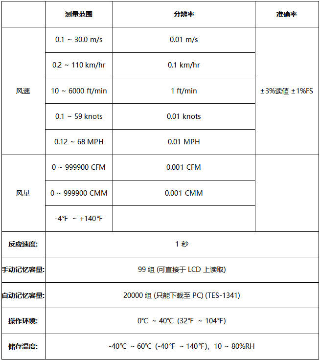 測量風速、風量、風溫的可選擇AVM-05,AVM-07,TES-1341;