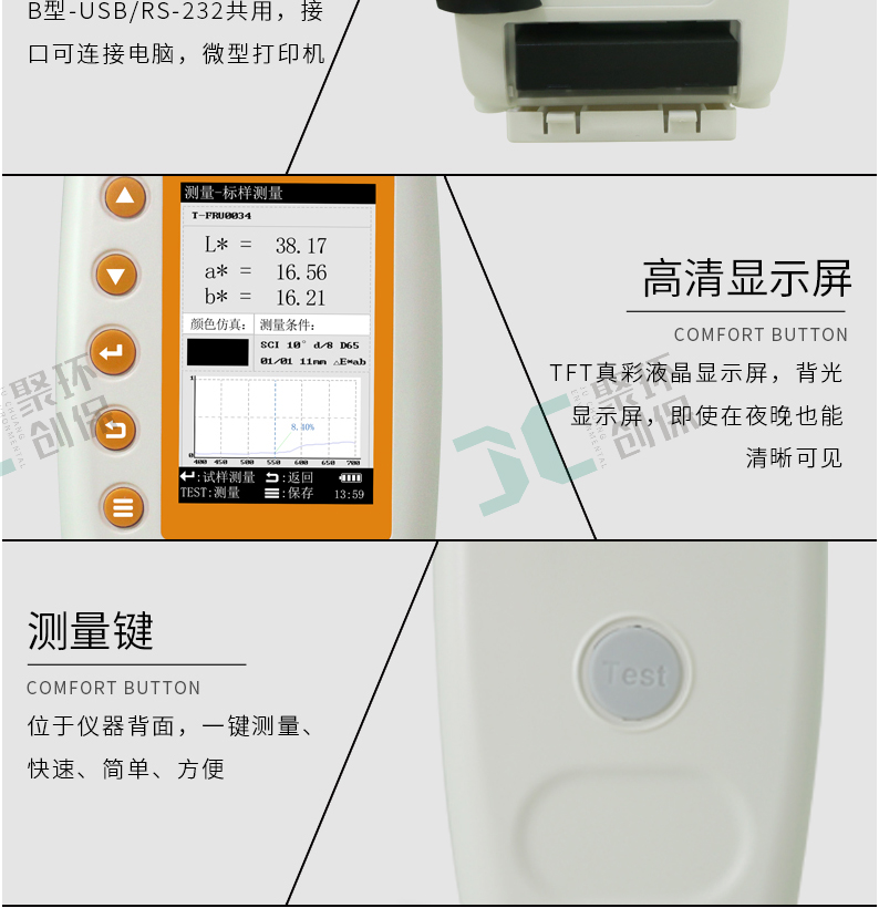 700D型分光測色儀可與電腦端上位機軟件(選配)進行通訊連接,利用電腦端軟件對儀器的功能進行拓展,可實現數據的分析、上傳、下載、打印以及手動輸入LAB值等功能;也可與微型打印機(選配)進行連接,可以實現測量數據的實時打印。