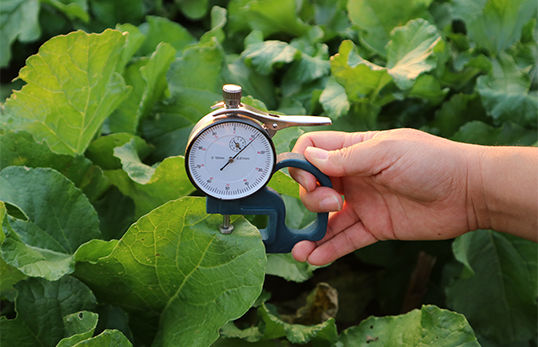 葉片是植物重要的器官,其厚度變化可以反映出植物生長狀態的變化,如光合作用、水分情況、蒸騰情況、土壤溫濕度情況、養分情況等。研究表明,葉片厚度變化具有周期規律性,可分為長周期和短周期(24小時)。掌握這些規律對研究植物水分狀態具有重要意義,還可以通過這些規律指導農業節水灌溉。YHD-1 葉片厚度儀是一種專業測量葉片厚度的工具,可以精準的測量出葉片的厚度。