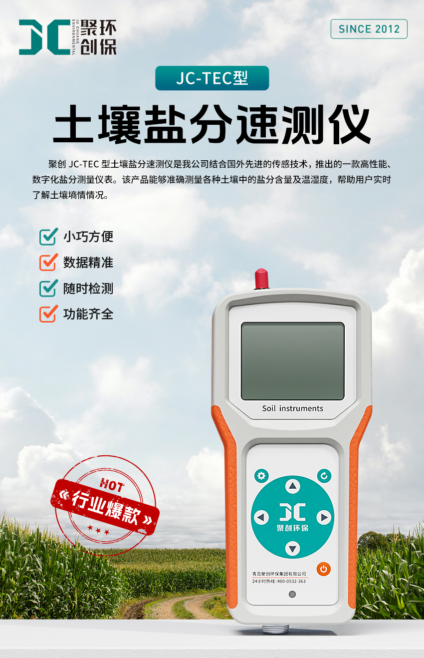 聚創(chuàng)JC-TEC型土壤鹽分速測(cè)儀是我公司結(jié)合國(guó)外先進(jìn)的傳感技術(shù),推出的一款高性能、數(shù)字化鹽分測(cè)量?jī)x表。該產(chǎn)品能夠準(zhǔn)確測(cè)量各種土壤中的鹽分含量及溫濕度,幫助用戶實(shí)時(shí)了解土壤墑情情況。