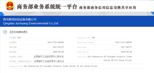 其中3A級表示企業信用好,債務風險小。此次獲得此項認證,表明聚創環保具有優秀的信用記錄,經營狀況佳,盈利能力強,發展前景廣闊,不確定性因素對其經營與發展的影響極小。