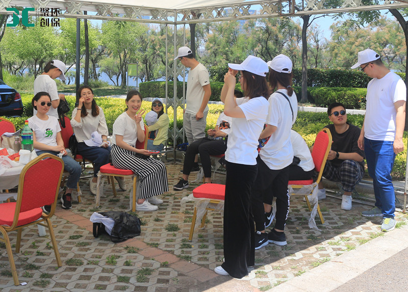 6月22日,青島聚創(chuàng)環(huán)保全體員工統(tǒng)一著白色T恤衫,戴有“聚創(chuàng)環(huán)保logo”的棒球帽,于上午8:40在青島高新區(qū)智力河葫蘆島集合。