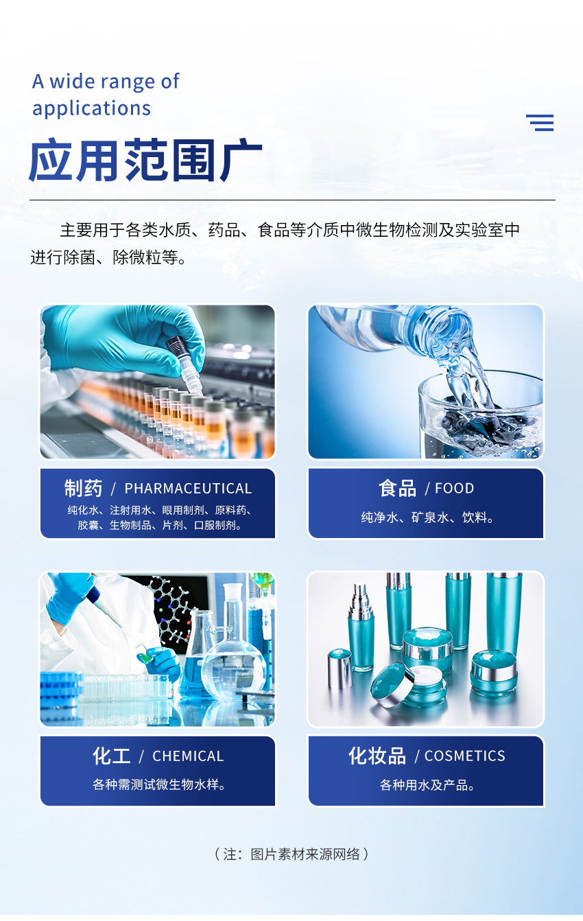此類產品適用于水質,藥品、飲料等產品的微生物檢查。
